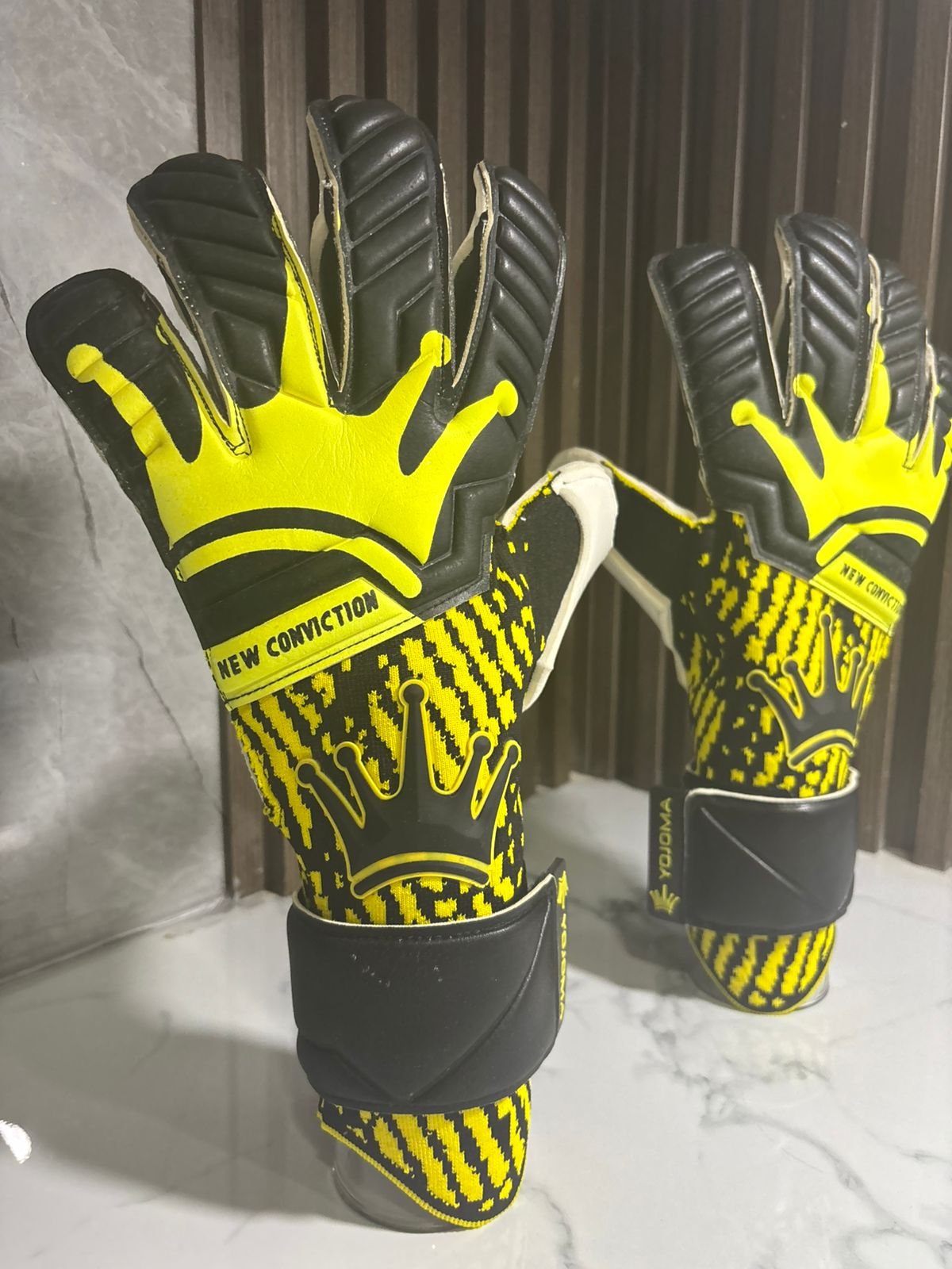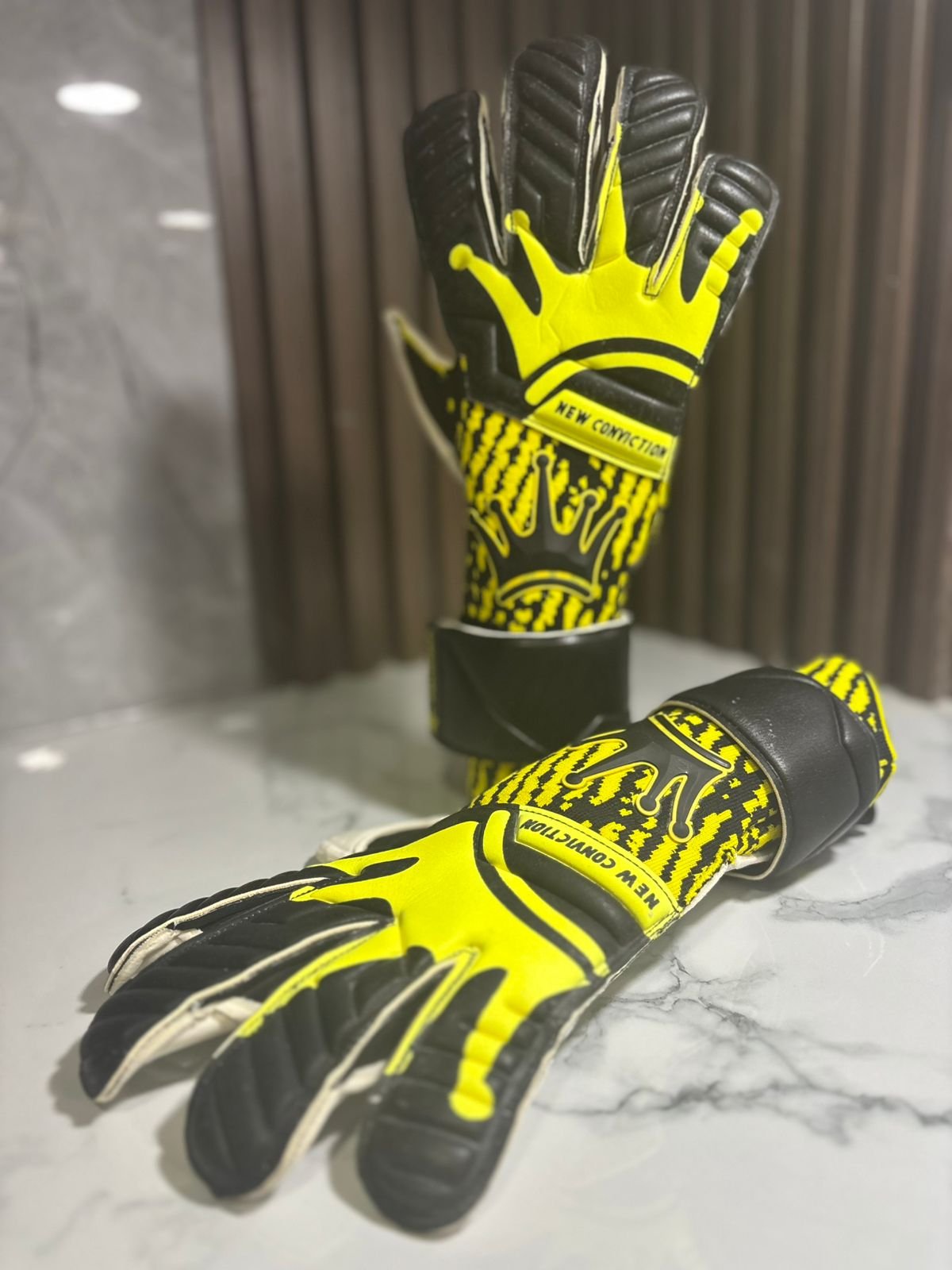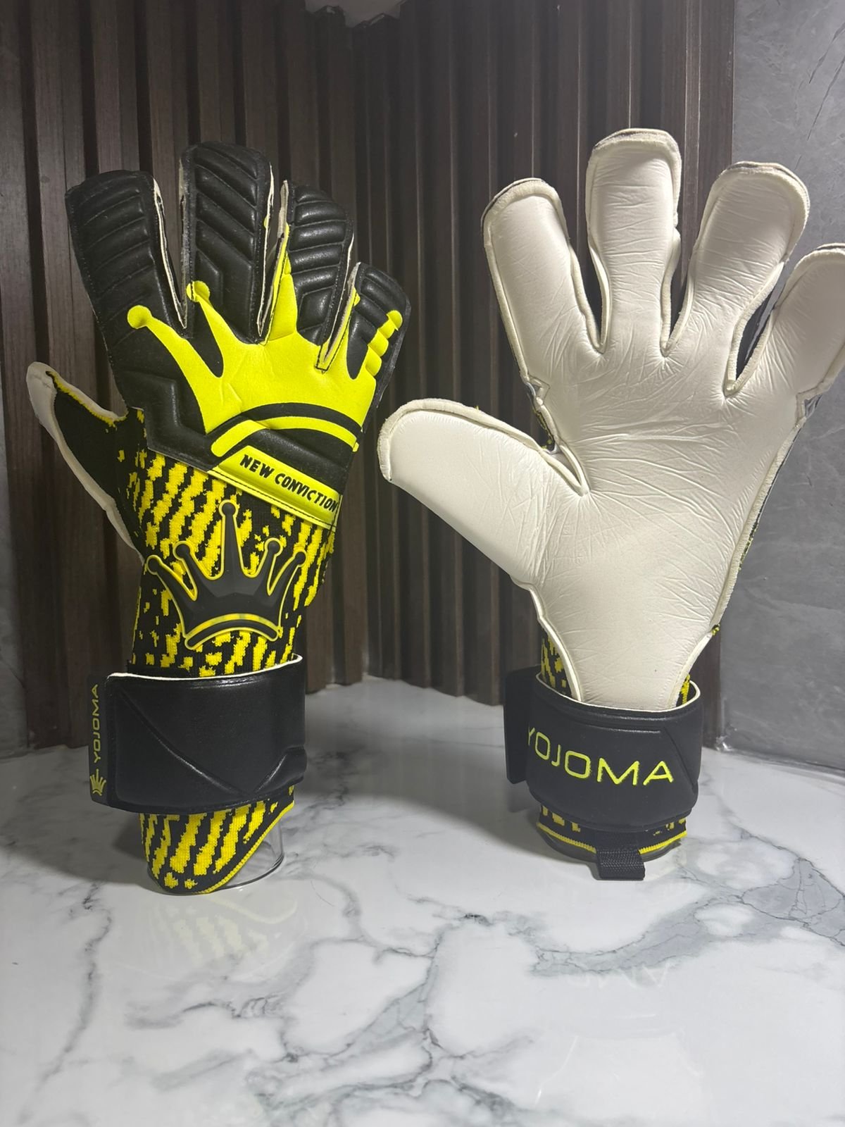 • Dorso confeccionado en material KNIT y en la zona de puños una placa de látex frecuenciada para dar mayor robustez y comodidad al despejar el balón